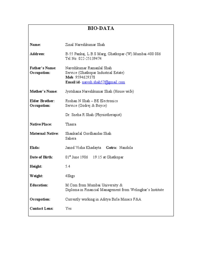 Biodata For Marriage In Bangladesh Doc / India, bangladesh) it is used in the place of a resume.