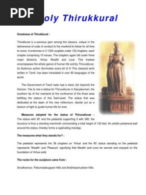 Thirukkural With Meaning Tamil Pdf Printlondon Tiru is an honorific tamil term that corresponds to the universally indian, sanskrit term sri meaning holy, sacred, excellent, honorable, and beautiful the work is highly cherished in the tamil culture, as reflected by its nine different traditional titles:
