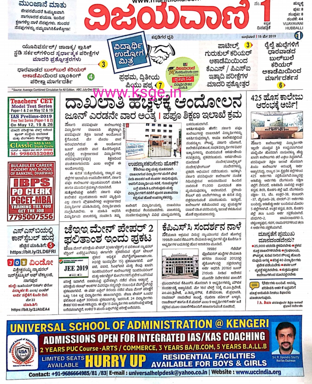 Today's Vijayavani Kannada News Paper Today To Read : Sumanasa.com aggregates kannada news (kannada: